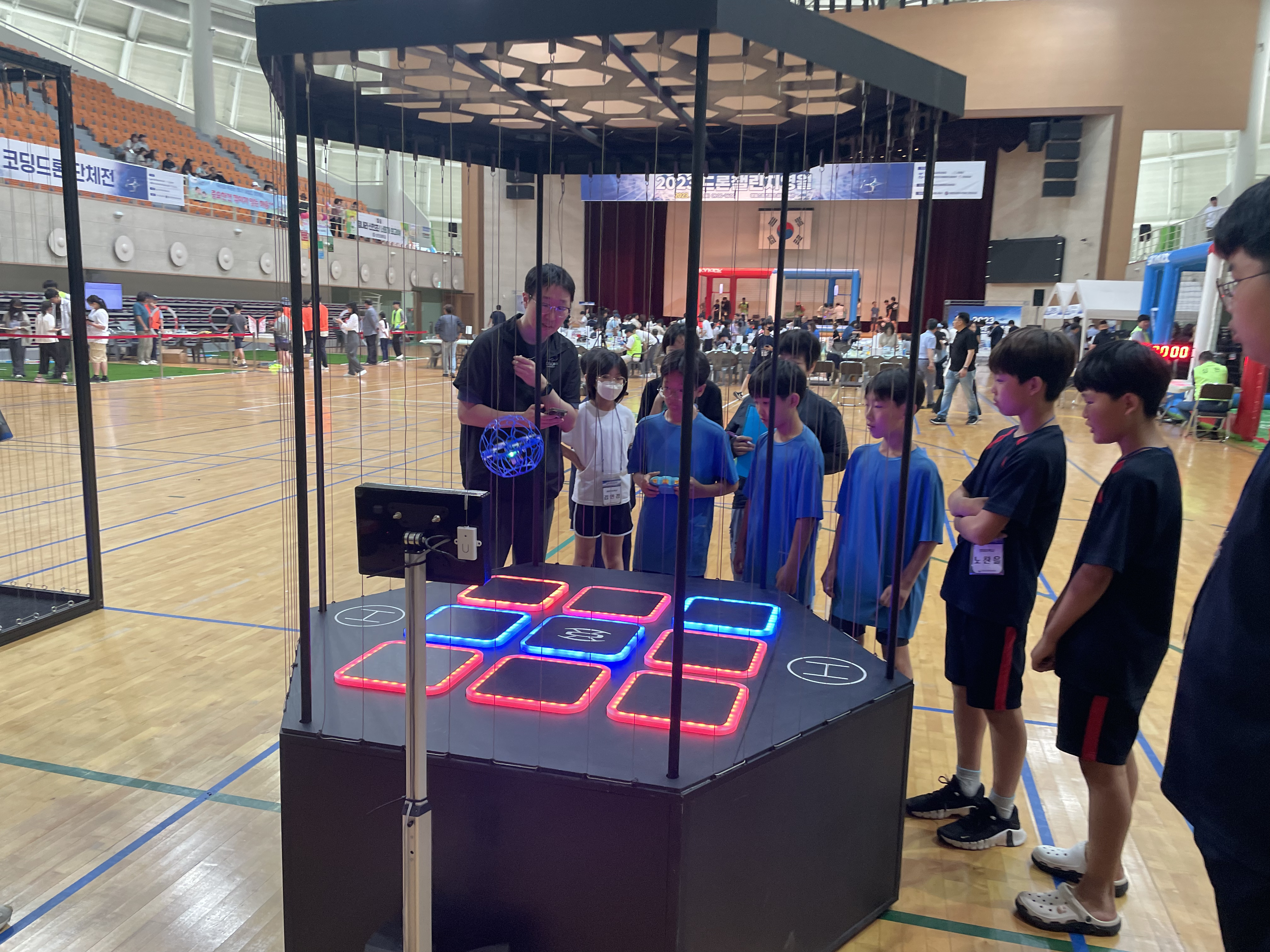 경기시간은 약 1분~3분 정도로 상당히 짧으면서도 시간내에 승부를 내야 하기 때문에 긴장감과 몰입도를 높여주고 작은 공간 내에서 공격과 방어를 동시에 진행해야 하기 때문에 상당한 집중도를 요하는 게임입니다. '2021 드론쇼코리아'에 참석한 분들이