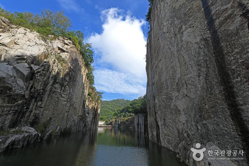 폐채석장 업사이클링 관광지라고 소개하는 이곳 포천아트밸리는 훼손된 자연경관을 친환경적으로 복구하고 일부는 과거 경관을 그대로 보존함으로써 많은 사람들이 찾는 특색 있는 공간이 되었습니다. 가파는 언덕 지형의 관광지라 편도로 운영되는 모노레일도 있고요, 아이들이 관심 있게 참여할 수 있는 천문과학관, 그리고 가장 인기 있는 장소 천추호, 이곳이 드라마 촬영지로 많이 유명한 곳인데요 반듯하게 깎긴 절벽과 함께 신기한 풍경을 보여주는 명소였습니다. 가족들끼리 많이 와서 산책하며 즐기는 곳으로 추천드릴 수 있겠습니다.