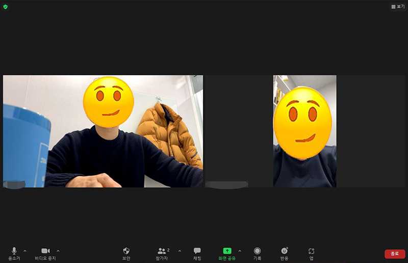 화상 회의 플랫폼에서 어떻게 카메라가 인식이 되는지 확인하기 위해서 Zoom을 이용해보았습니다.
