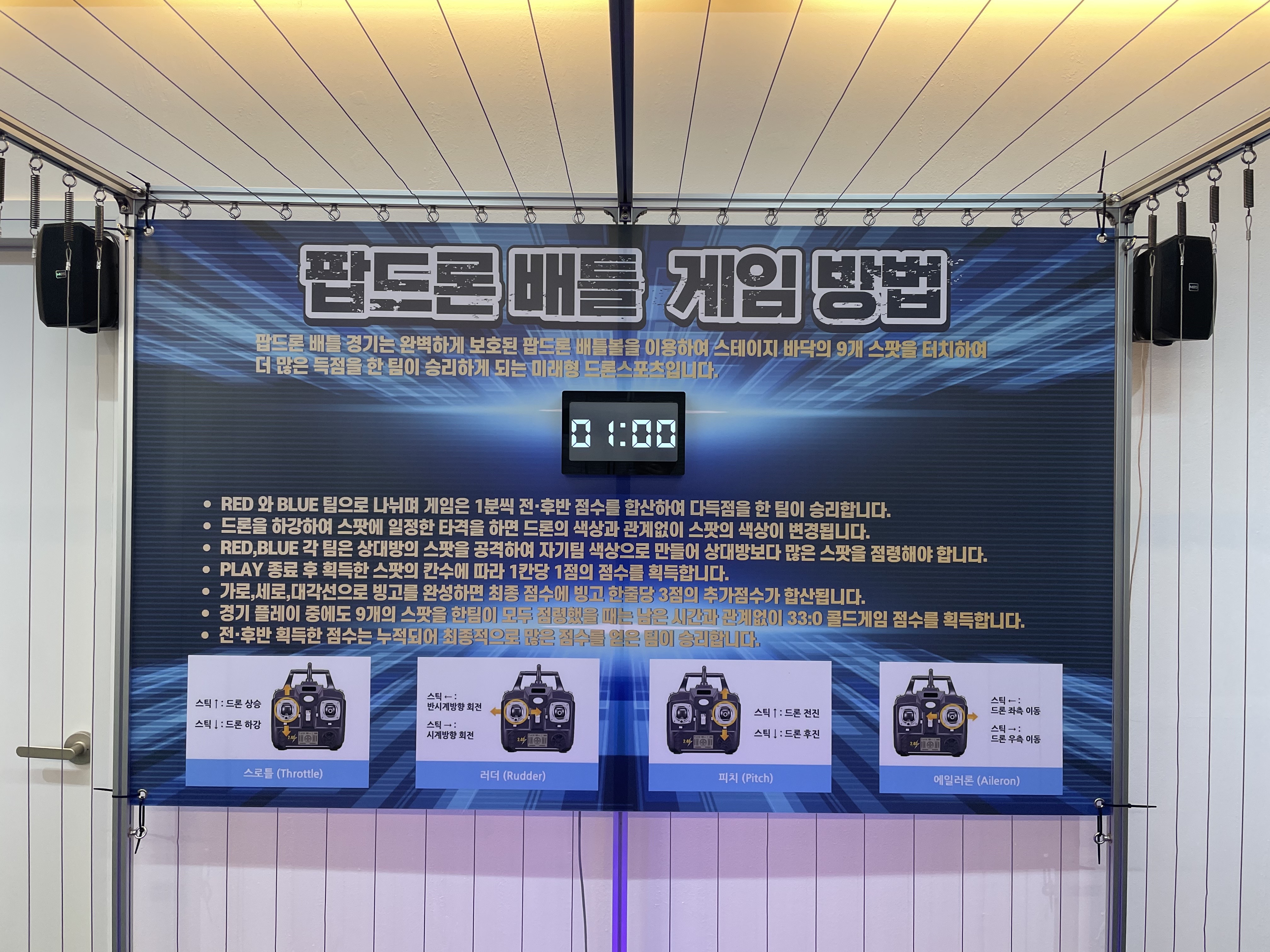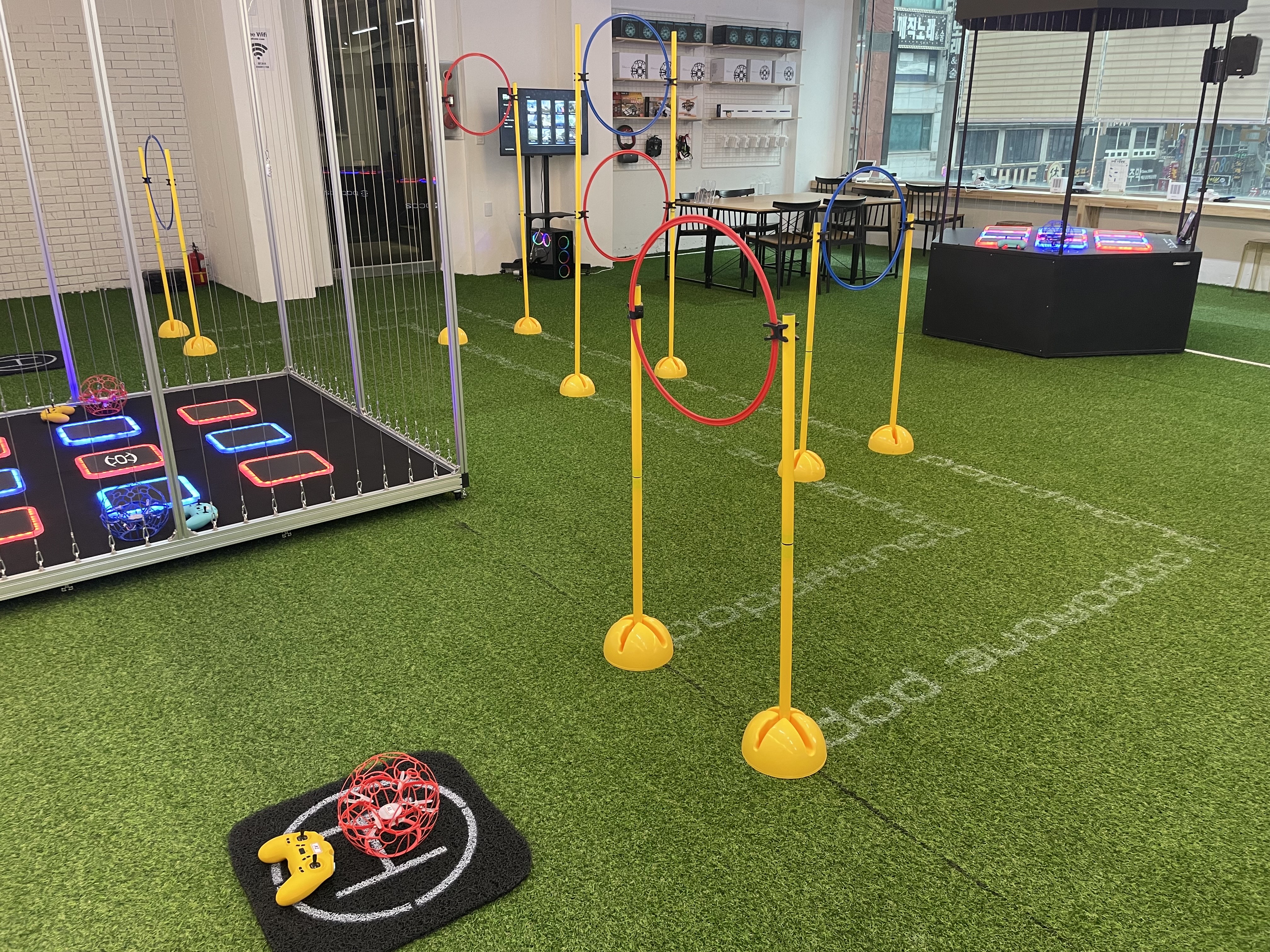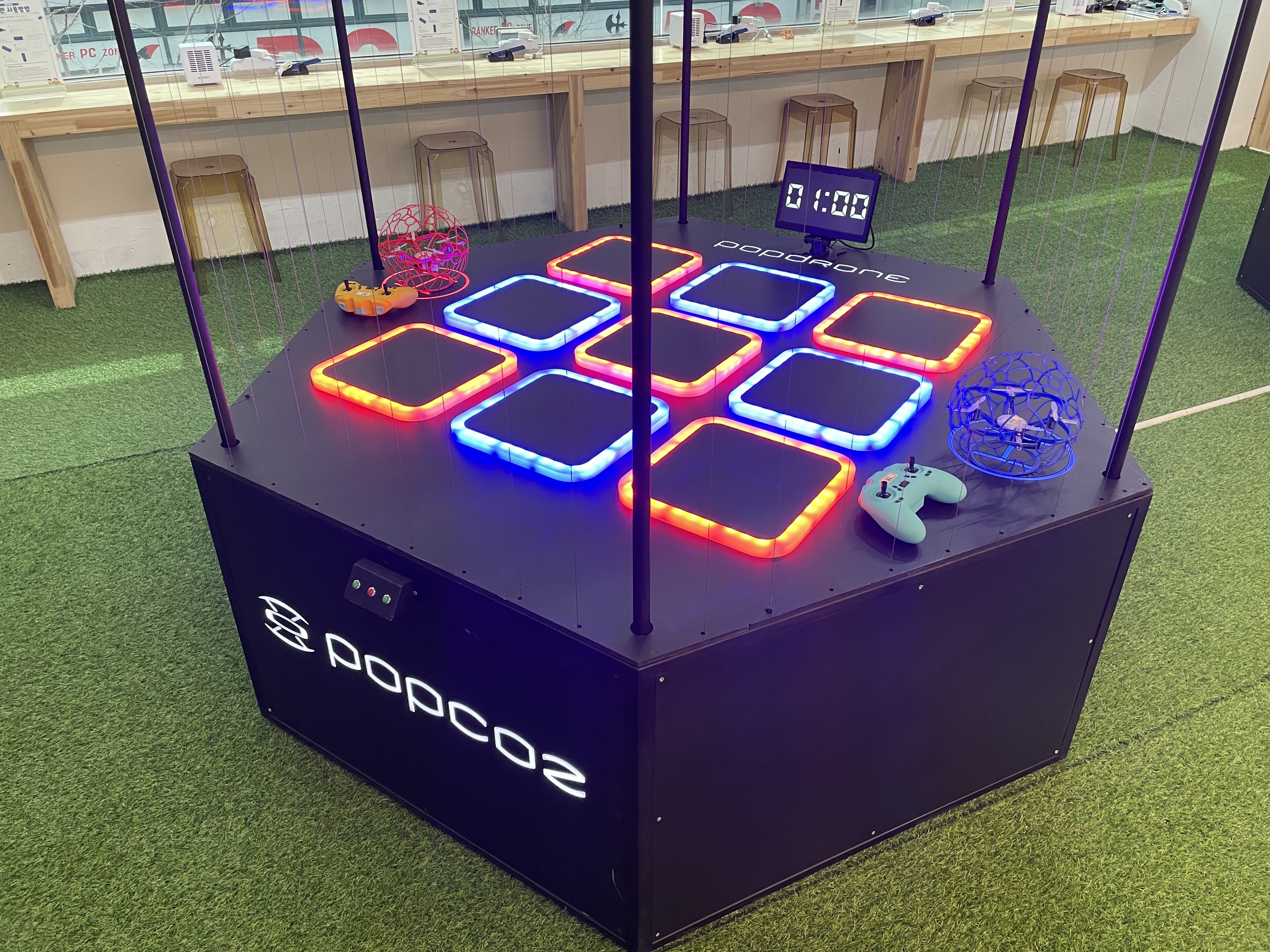고객분께 청주 팝드론존을 소개해드리면서 재밌는 게임과 함께 드론 조종을 익힐 수 있는 교육 프로그램을 소개해드렸습니다. 팝드론을 체험할 수 있는 팝드론존은 남녀노소 누구나 드론 스포츠를 즐길 수 있는 장점이 있고 보는 재미도 솔솔해서 전국적으로 팝드론 대회도 많이 하고 있습니다. 초등학생들의 드론에 대한 꿈을 꿀 수 있는 미래지향적 공간이라고 보시면 될 거 같아요